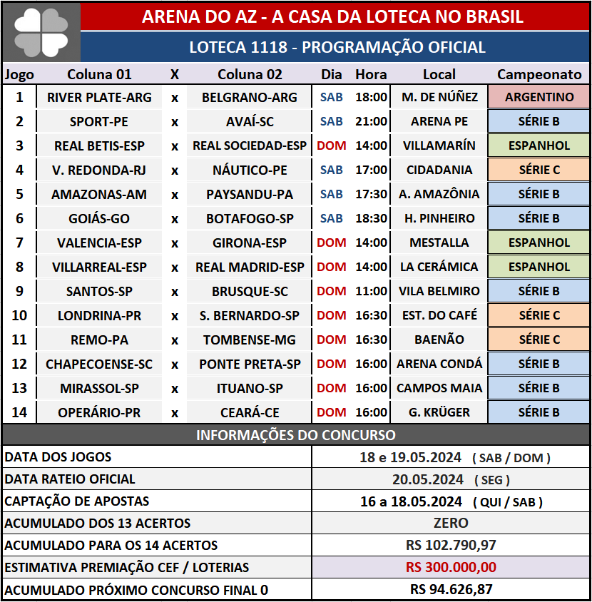 Programação da Loteca Posted on 17 de maio de 2024 by Ednaldo Ferreira Leave a comment Compartilhe isso: Previous Next Return to LOTECA 1118 – PROGRAMAÇÃO OFICIAL