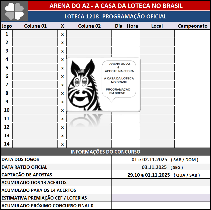 Programação da Loteca Posted on 20 de outubro de 2025 by Ednaldo Ferreira Leave a comment Compartilhe isso: Previous Next Return to LOTECA 1218 – PROGRAMAÇÃO OFICIAL / CRONOGRAMA